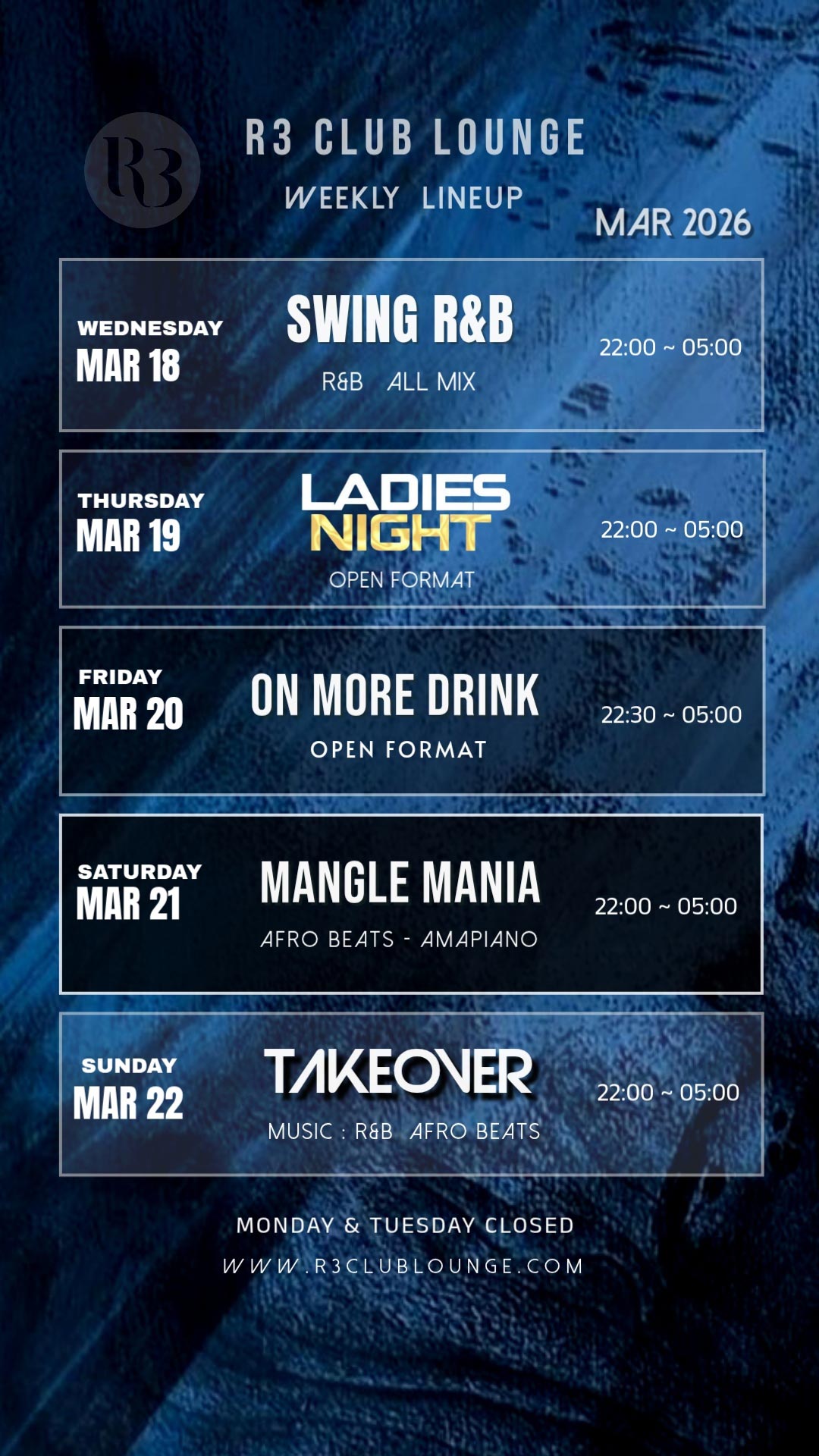 Promoters, Bartenders, Champagne girls, Floor Staff and more. Join us and work at R3 Club Lounge!
